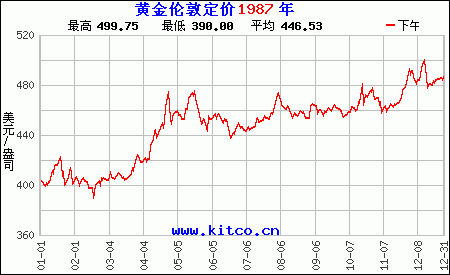 提供1987年黄金价格查询,数据以美元每盎司黄金计价,黄金价格走势图仅供参考,本站对查询该历史金价数据导致的结果概不承担任何责任。