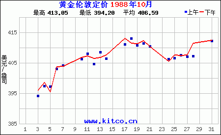 提供1988年10月的黄金价格查询,图表数据以美元/盎司黄金计价,黄金价格走势图仅供参考,本站对查询该历史金价数据导致的结果概不承担任何责任。