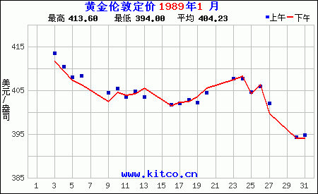 提供1989年1月的黄金价格查询,图表数据以美元/盎司黄金计价,黄金价格走势图仅供参考,本站对查询该历史金价数据导致的结果概不承担任何责任。