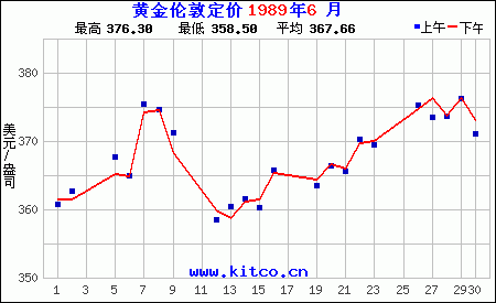 提供1989年6月的黄金价格查询,图表数据以美元/盎司黄金计价,黄金价格走势图仅供参考,本站对查询该历史金价数据导致的结果概不承担任何责任。
