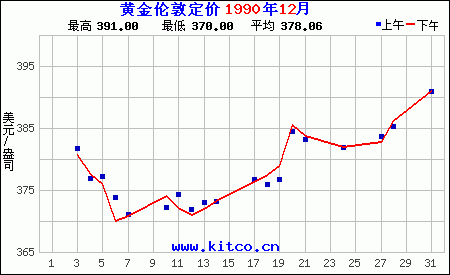 1990年12月伦敦黄金价格