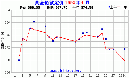 提供1990年4月的黄金价格查询,图表数据以美元/盎司黄金计价,黄金价格走势图仅供参考,本站对查询该历史金价数据导致的结果概不承担任何责任。