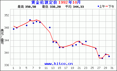 提供1992年10月的黄金价格查询,图表数据以美元/盎司黄金计价,黄金价格走势图仅供参考,本站对查询该历史金价数据导致的结果概不承担任何责任。