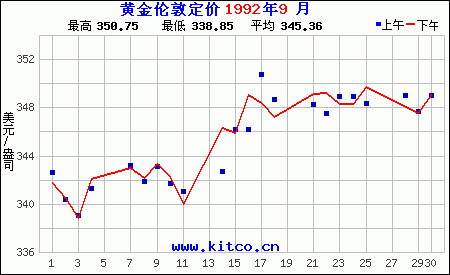 提供1992年9月的黄金价格查询,图表数据以美元/盎司黄金计价,黄金价格走势图仅供参考,本站对查询该历史金价数据导致的结果概不承担任何责任。