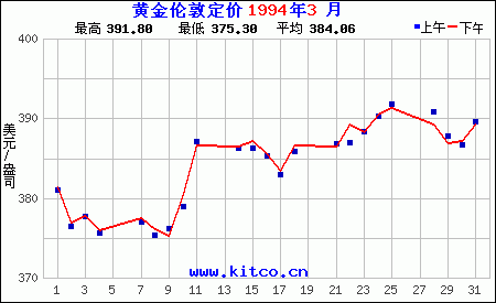 提供1994年3月的黄金价格查询,图表数据以美元/盎司黄金计价,黄金价格走势图仅供参考,本站对查询该历史金价数据导致的结果概不承担任何责任。