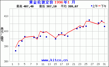 提供1996年1月的黄金价格查询,图表数据以美元/盎司黄金计价,黄金价格走势图仅供参考,本站对查询该历史金价数据导致的结果概不承担任何责任。