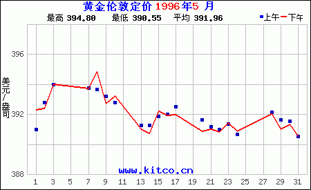 提供1996年5月的黄金价格查询,图表数据以美元/盎司黄金计价,黄金价格走势图仅供参考,本站对查询该历史金价数据导致的结果概不承担任何责任。