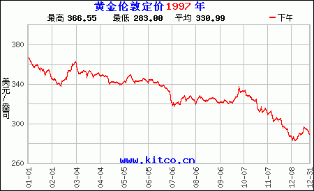 提供1997年黄金价格查询,数据以美元每盎司黄金计价,黄金价格走势图仅供参考,本站对查询该历史金价数据导致的结果概不承担任何责任。