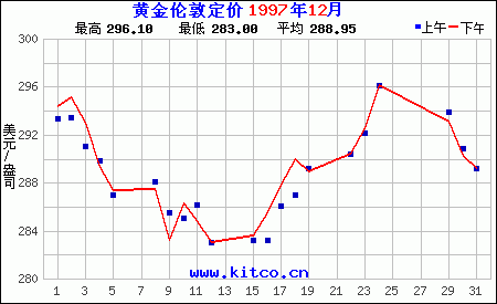 1997年12月伦敦黄金价格