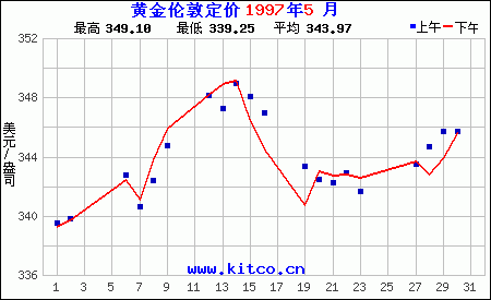 提供1997年5月的黄金价格查询,图表数据以美元/盎司黄金计价,黄金价格走势图仅供参考,本站对查询该历史金价数据导致的结果概不承担任何责任。