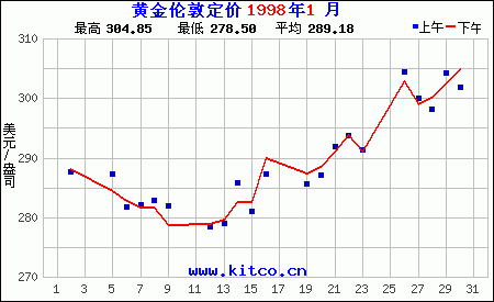 1998年1月伦敦黄金价格