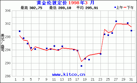 1998年3月伦敦黄金价格