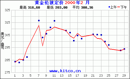 提供2000年2月的黄金价格查询,图表数据以美元/盎司黄金计价,黄金价格走势图仅供参考,本站对查询该历史金价数据导致的结果概不承担任何责任。