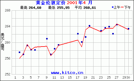 提供2001年4月的黄金价格查询,图表数据以美元/盎司黄金计价,黄金价格走势图仅供参考,本站对查询该历史金价数据导致的结果概不承担任何责任。