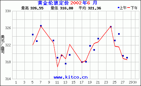 提供2002年6月的黄金价格查询,图表数据以美元/盎司黄金计价,黄金价格走势图仅供参考,本站对查询该历史金价数据导致的结果概不承担任何责任。