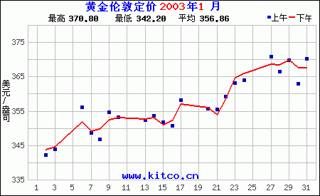 提供2003年1月的黄金价格查询,图表数据以美元/盎司黄金计价,黄金价格走势图仅供参考,本站对查询该历史金价数据导致的结果概不承担任何责任。