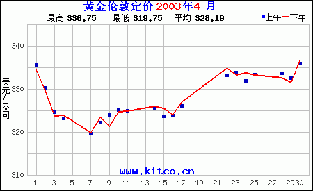 提供2003年4月的黄金价格查询,图表数据以美元/盎司黄金计价,黄金价格走势图仅供参考,本站对查询该历史金价数据导致的结果概不承担任何责任。