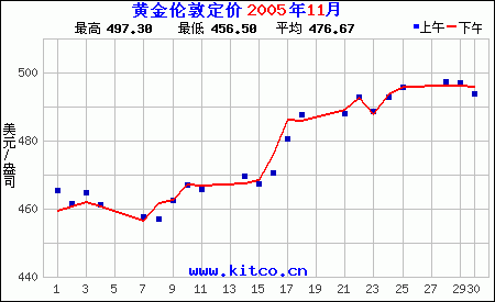2005年11月伦敦黄金价格