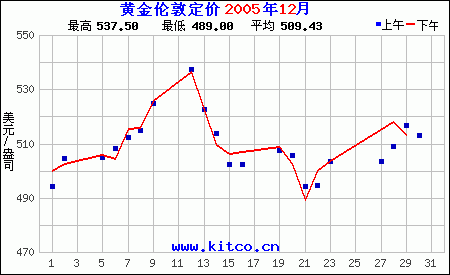 2005年12月伦敦黄金价格