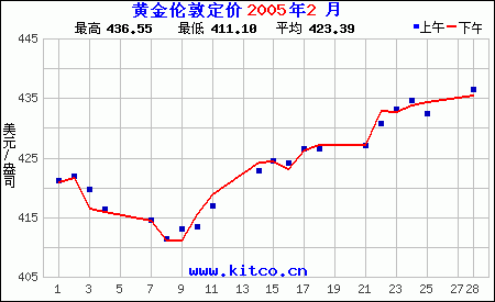 2005年2月伦敦黄金价格
