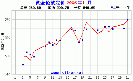2006年1月伦敦黄金价格