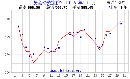 提供2006年10月的黄金价格查询,图表数据以美元/盎司黄金计价,黄金价格走势图仅供参考,本站对查询该历史金价数据导致的结果概不承担任何责任。