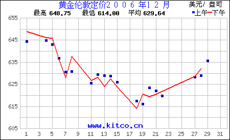 提供2006年12月的黄金价格查询,图表数据以美元/盎司黄金计价,黄金价格走势图仅供参考,本站对查询该历史金价数据导致的结果概不承担任何责任。