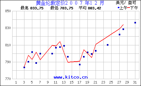 提供2007年12月的黄金价格查询,图表数据以美元/盎司黄金计价,黄金价格走势图仅供参考,本站对查询该历史金价数据导致的结果概不承担任何责任。