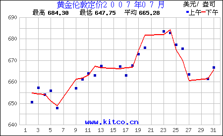 2007年7月伦敦黄金价格