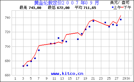 2007年9月伦敦黄金价格