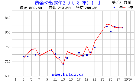 2008年11月伦敦黄金价格