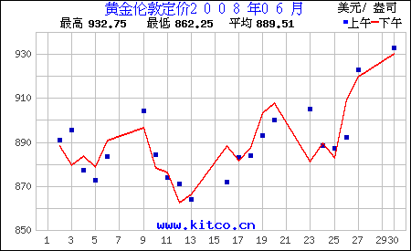 2008年6月黄金价格行情走势图