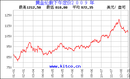 提供2009年黄金价格查询,数据以美元每盎司黄金计价,黄金价格走势图仅供参考,本站对查询该历史金价数据导致的结果概不承担任何责任。