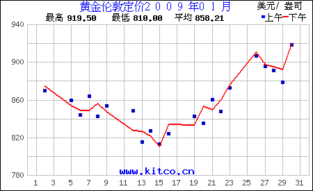 2009年1月伦敦黄金价格