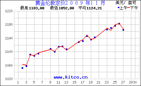 2009年11月伦敦黄金价格