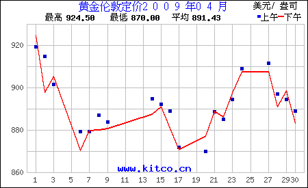 2009年4月伦敦黄金价格