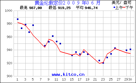 2009年6月伦敦黄金价格