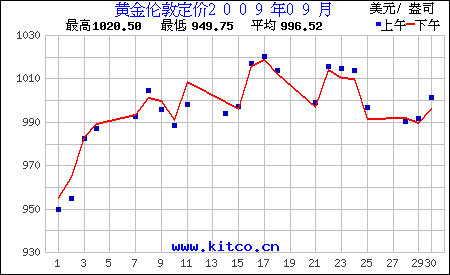 2009年9月伦敦黄金价格