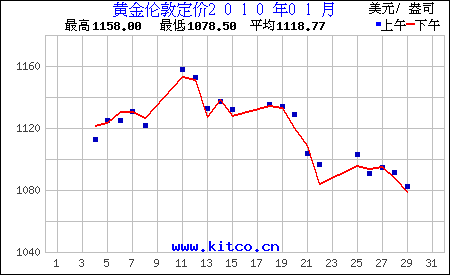 2010年1月伦敦黄金价格