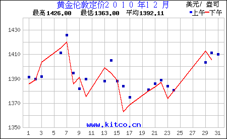 提供2010年12月的黄金价格查询,图表数据以美元/盎司黄金计价,黄金价格走势图仅供参考,本站对查询该历史金价数据导致的结果概不承担任何责任。