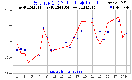 2010年6月伦敦黄金价格