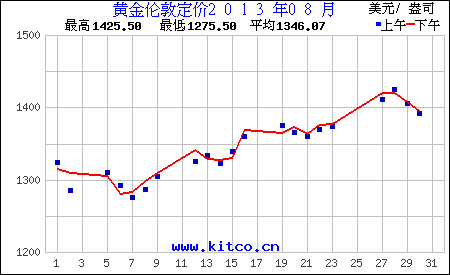 2013年8月伦敦黄金价格