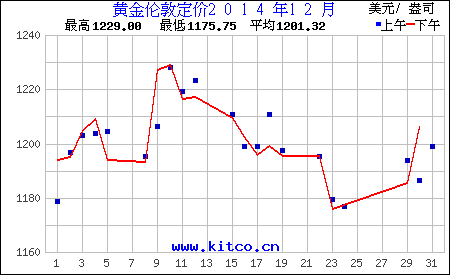 提供2014年12月的黄金价格查询,图表数据以美元/盎司黄金计价,黄金价格走势图仅供参考,本站对查询该历史金价数据导致的结果概不承担任何责任。
