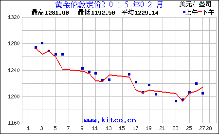 2015年2月伦敦黄金价格