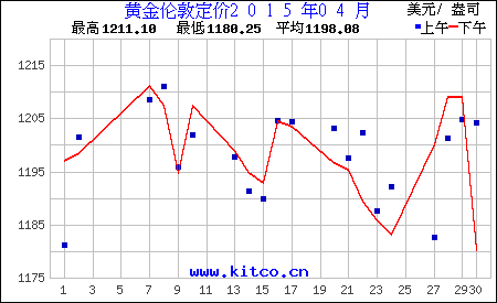 提供2015年4月的黄金价格查询,图表数据以美元/盎司黄金计价,黄金价格走势图仅供参考,本站对查询该历史金价数据导致的结果概不承担任何责任。