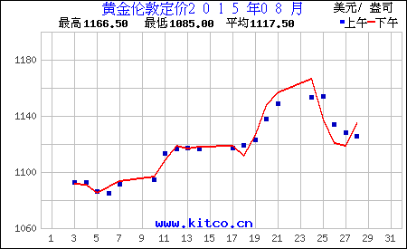 提供2015年8月的黄金价格查询,图表数据以美元/盎司黄金计价,黄金价格走势图仅供参考,本站对查询该历史金价数据导致的结果概不承担任何责任。