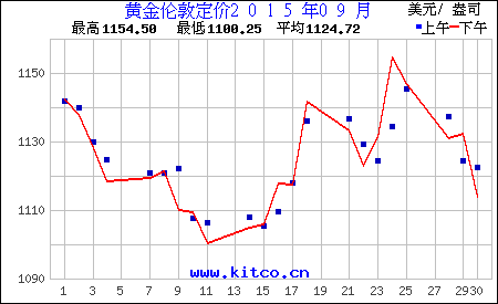 提供2015年9月的黄金价格查询,图表数据以美元/盎司黄金计价,黄金价格走势图仅供参考,本站对查询该历史金价数据导致的结果概不承担任何责任。