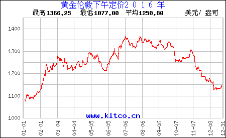 2016年黄金历史价格走势图