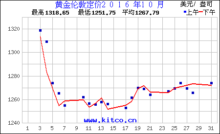2016年10月伦敦黄金价格