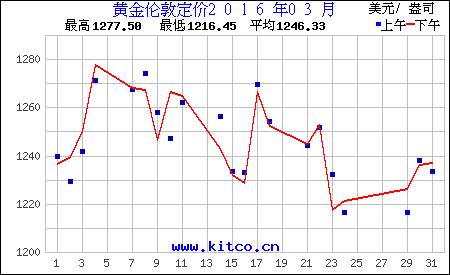 2016年3月伦敦黄金价格